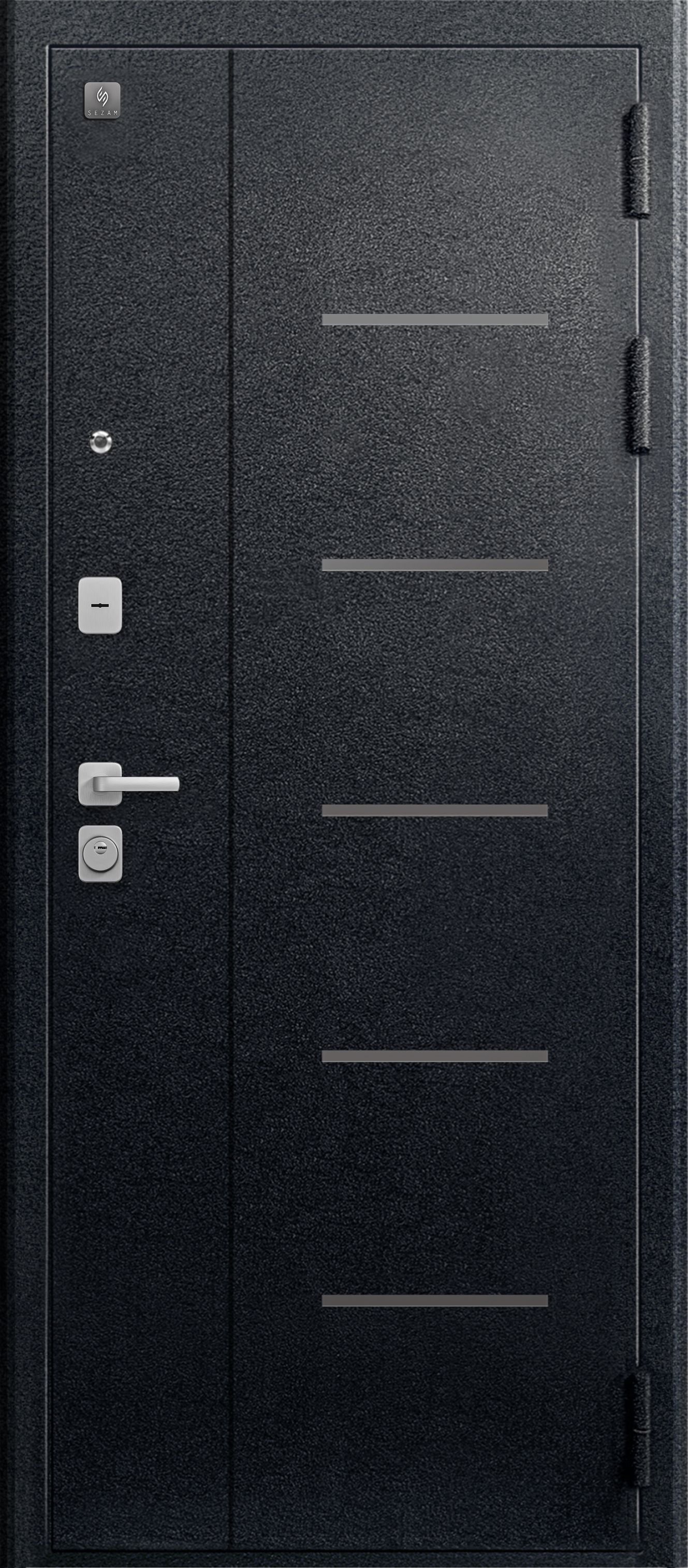 Модель 2026 года. Дверь В-05 торговой марки Sezam от завода Центурион серии СТАНДАРТ с базовыми техническими характеристиками. 3 контура уплотнения защищают квартиру от постороннего шума и сквозняков.