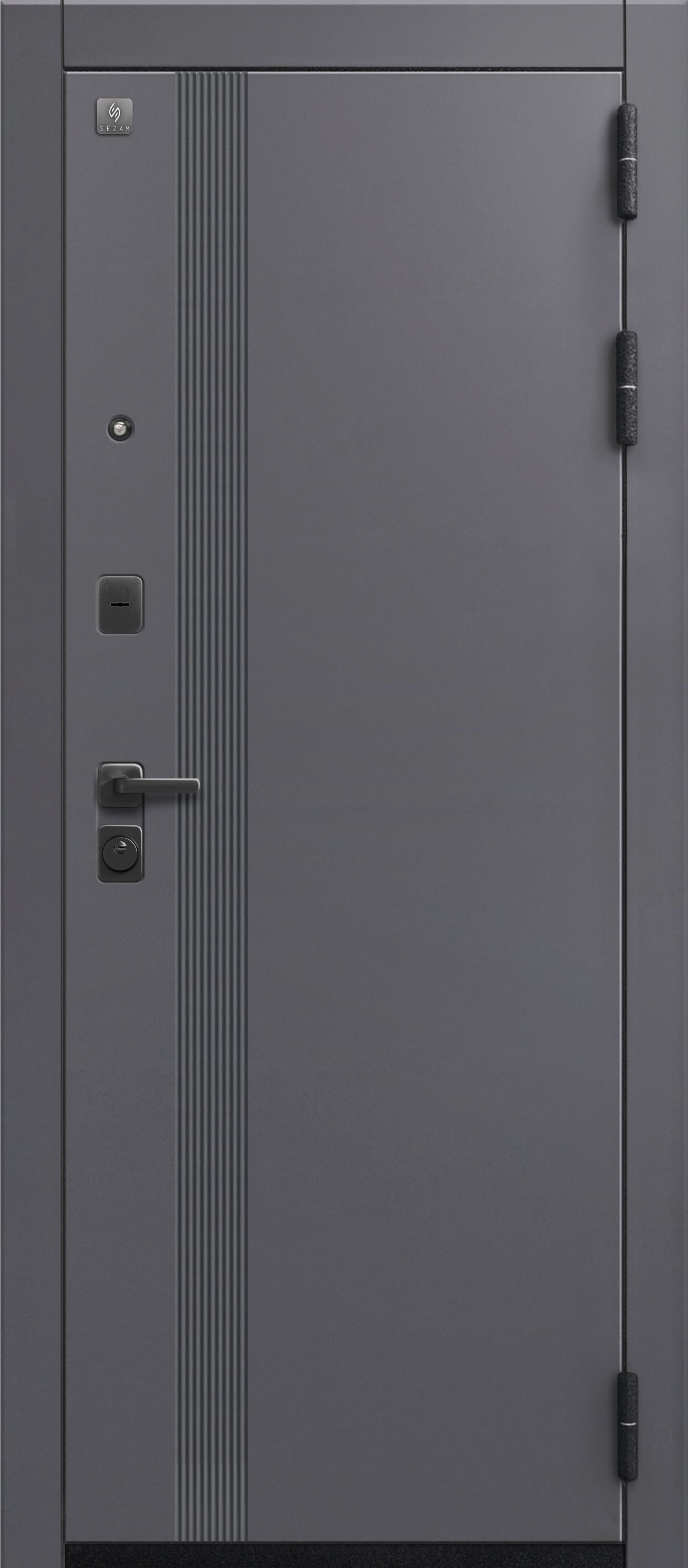 Замки двух типов закрывания – сувальдный Sezam 103 3 класса, и цилиндровый Sezam 102, 4 класса обеспечивают надежную защиту. Также вскрытию воспрепятствуют 3 противосъемных штыря со стороны петель.